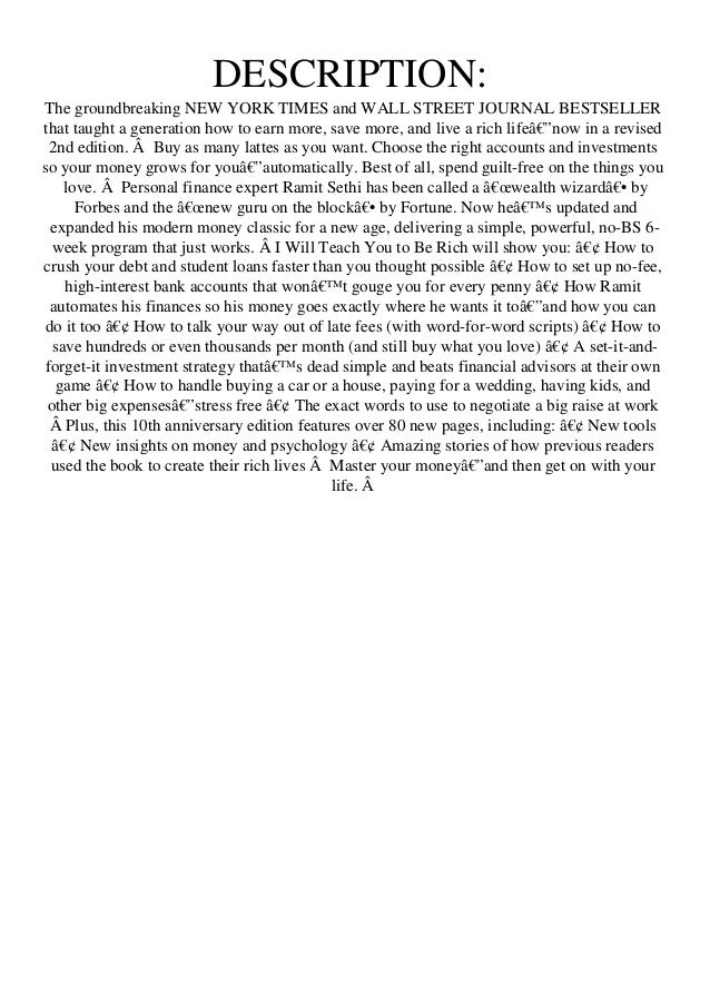 Resumen Completo Te Ensenare A Ser Rico I Will Teach You To Be Rich Basado En El Libro De Ramit Sethi By Libros Maestros